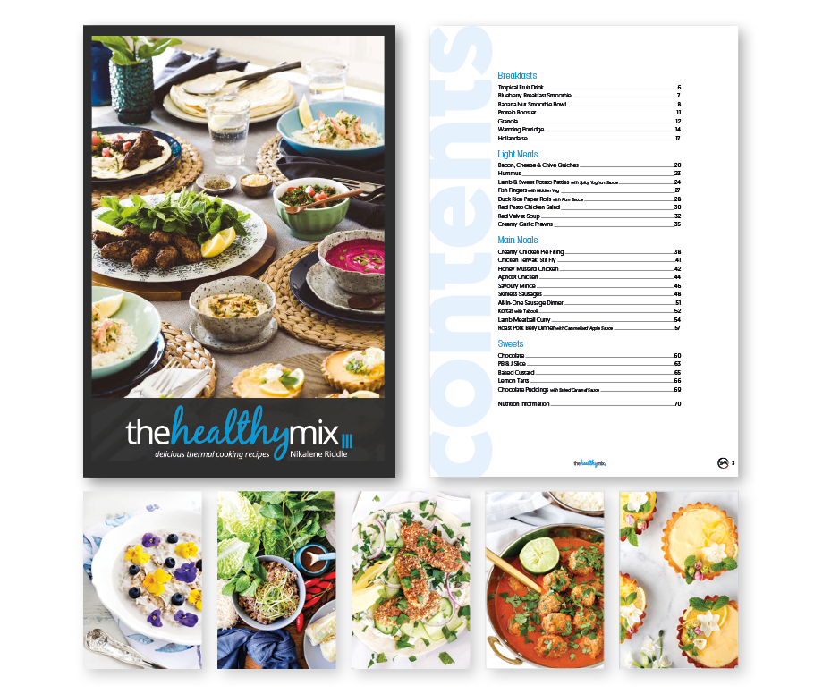 Recipes in the book cover you for the entire day from Breakfast, Light Meals, Main Meals and Sweets. With fan favourites including – Honey Mustard Chicken, Apricot Chicken, Creamy Chicken Pie Filling, All-in-One Sausage Dinner, Creamy Garlic Prawns, Bacon Cheese & Chive Quiches, Granola, Hollandaise, dairy free Chocolate & the most amazing Lemon Tarts.